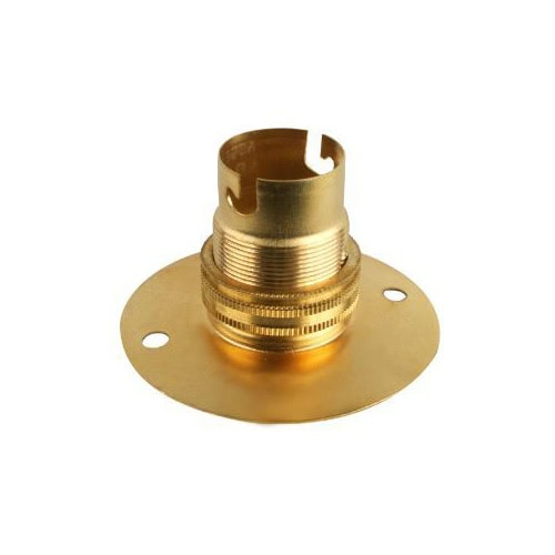 A B22 (BC) batten lamp holder constructed from brass, designed for direct surface mounting onto walls or ceilings. It provides a secure and stable base for bayonet cap bulbs, with enhanced durability compared to standard plastic holders.