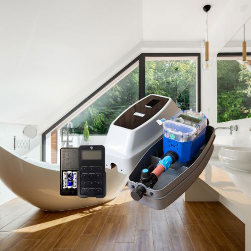 - Integrated design of electronics, water meter and ball valve.